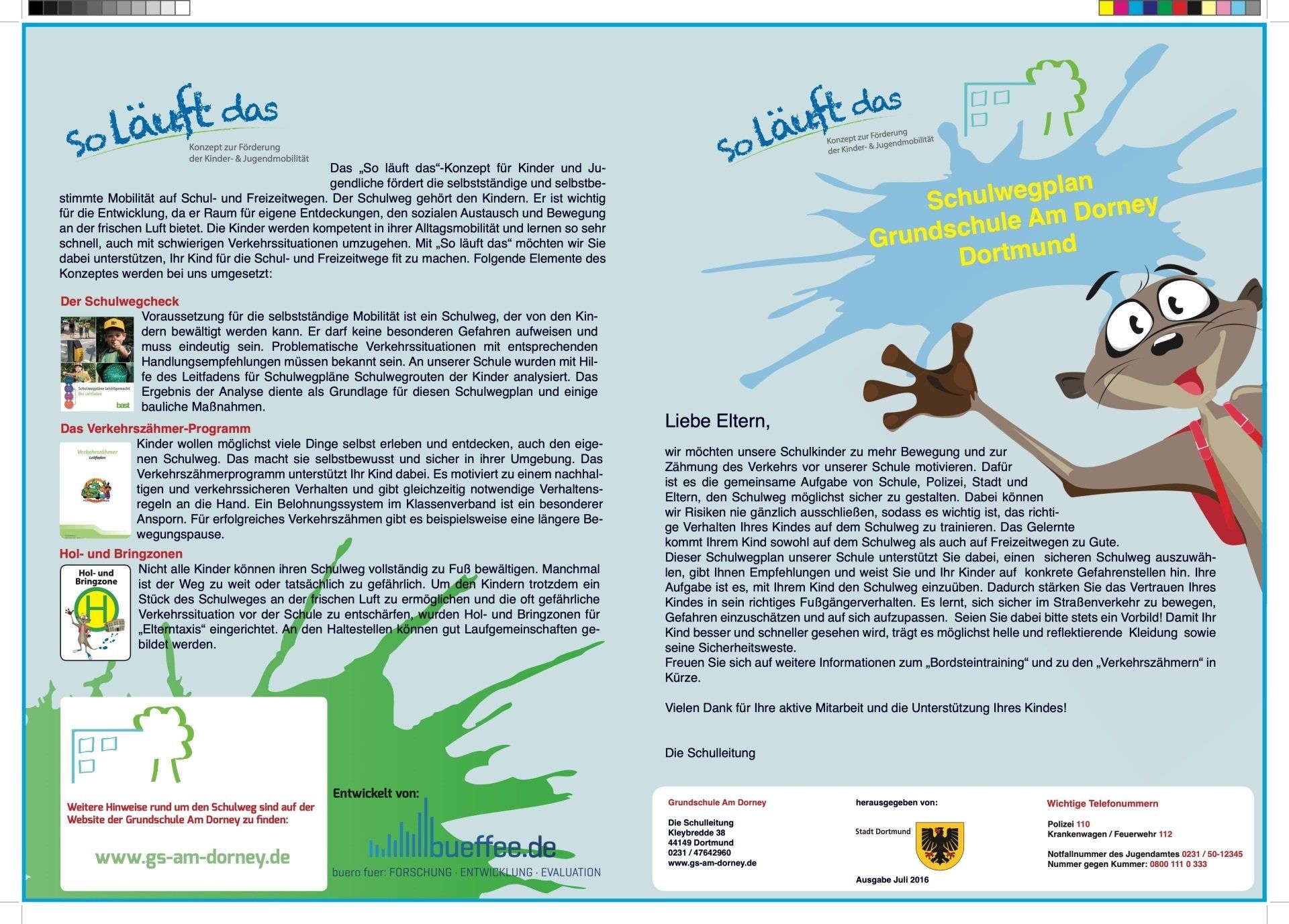 Zu Beginn des Schuljahres 2016/17 haben alle Eltern und Kinder unseren neuen „Schulwegplan“ erhalten. Um diesen zu erstellen, haben wir mithilfe des Leitfadens für Schulwegpläne die Schulwege der Kinder analysiert.
